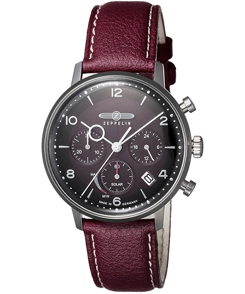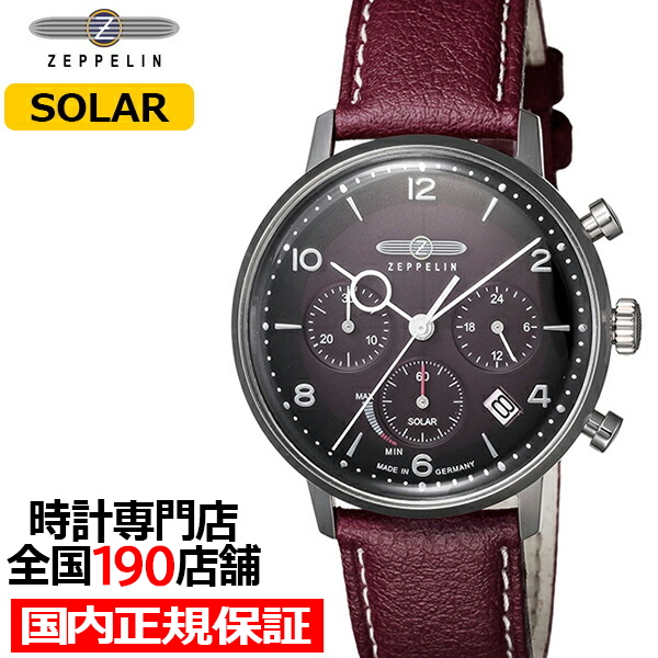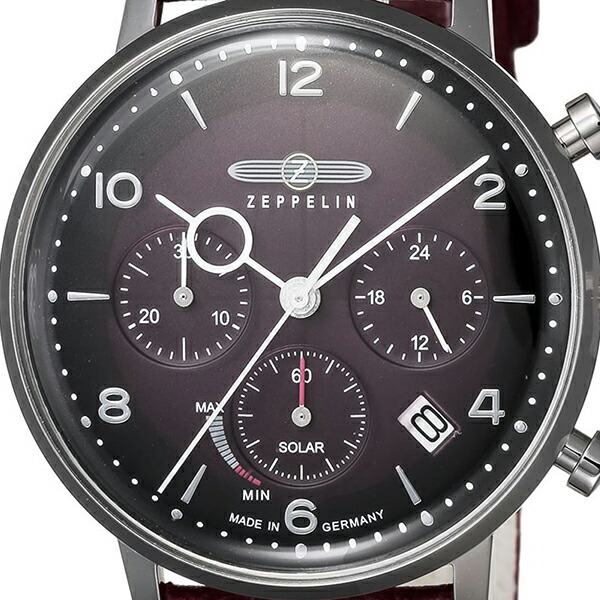 ツェッペリン HINDENBURG SOLAR ヒンデンブルク ソーラー 8086-2 メンズ 腕時計 ヴィーガンレザー レッド