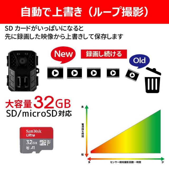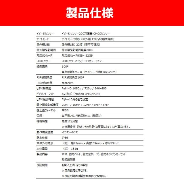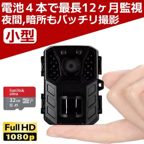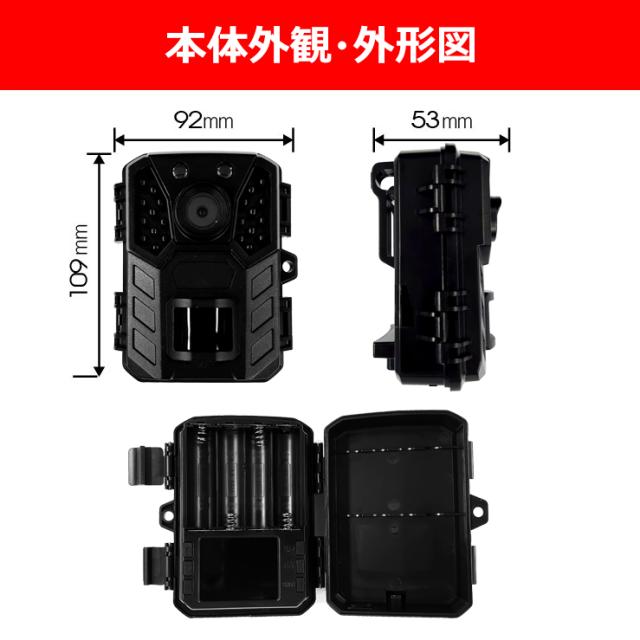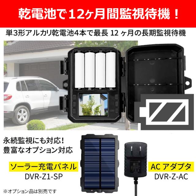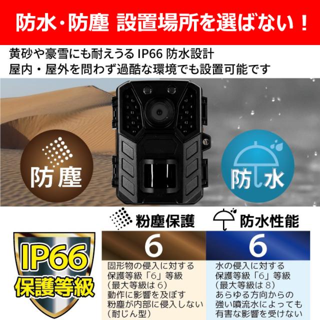 防犯カメラ トレイルカメラ 屋外 小型 家庭用 電源不要 工事不要 電池式 単三電池4本で最長12ヶ月駆動 監視 野外 ソーラー充電 防水防塵 赤外線 動体検知 人感センサー 暗視 自動録画 自宅 庭 配線不要