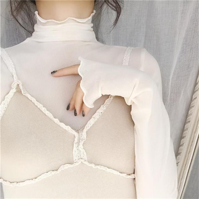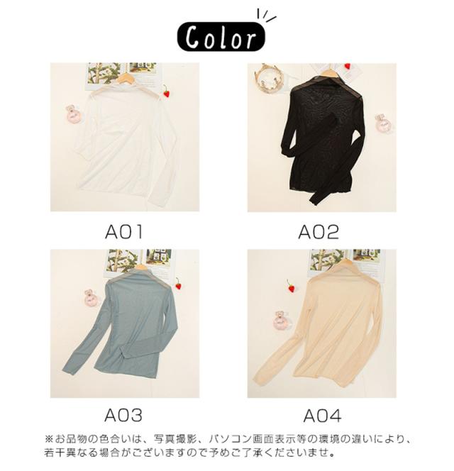 カットソー tシャツ Tシャツ レディース 長袖 メロウハイネックトップス シースルー ハイネック インナー トップス 重ね着 通