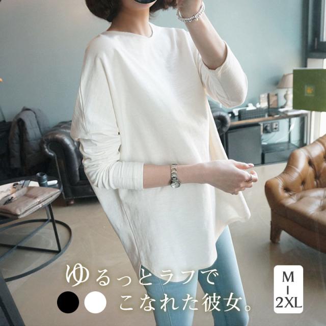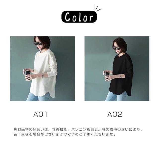 カットソー レディース トップス Tシャツ ラウンドカット ロンティー 春 ロンT 長袖 tシャツ ロング シンプル