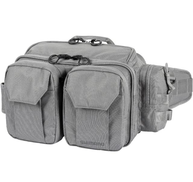 ルアーや小物を使いやすい場所に分けて収納できるウエストバッグ。釣り専用バッグとして、3種のホルダー(ドリンク/プライヤー/ロッド)を標準装備しています。