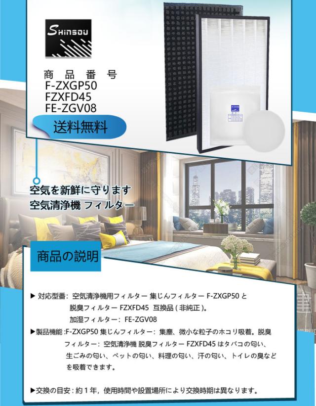 パナソニック( Panaconic 互換品 F-ZXGP50 集じんフィルター F-ZXFD45 脱臭フィルター FE-ZGV08 加湿フィルター 3点セット 交換フィルター