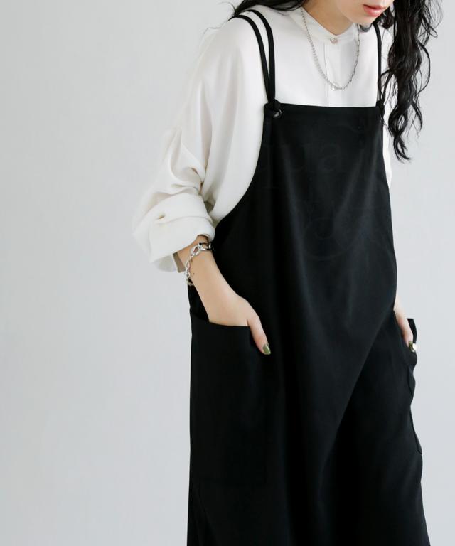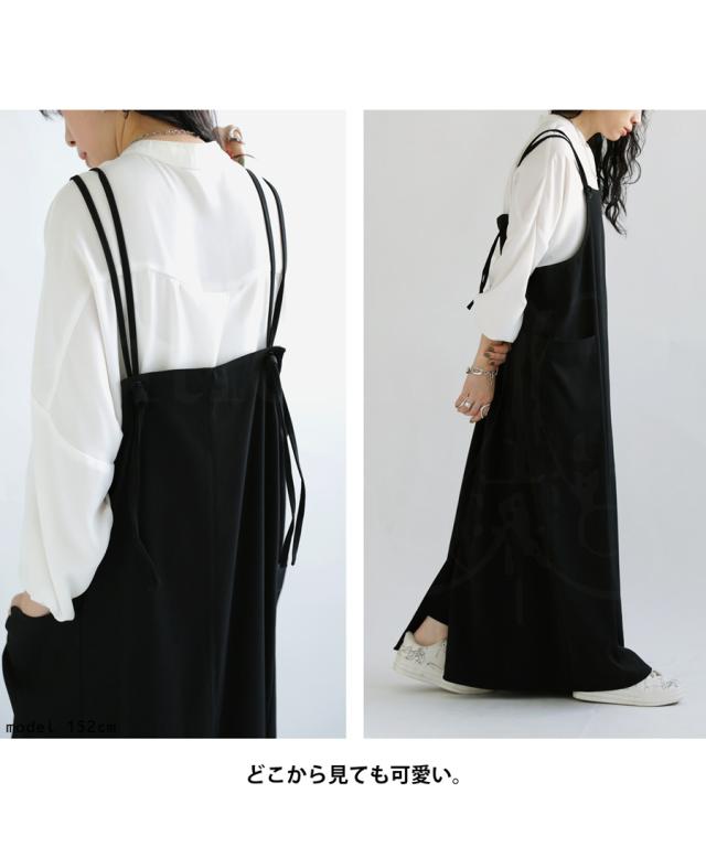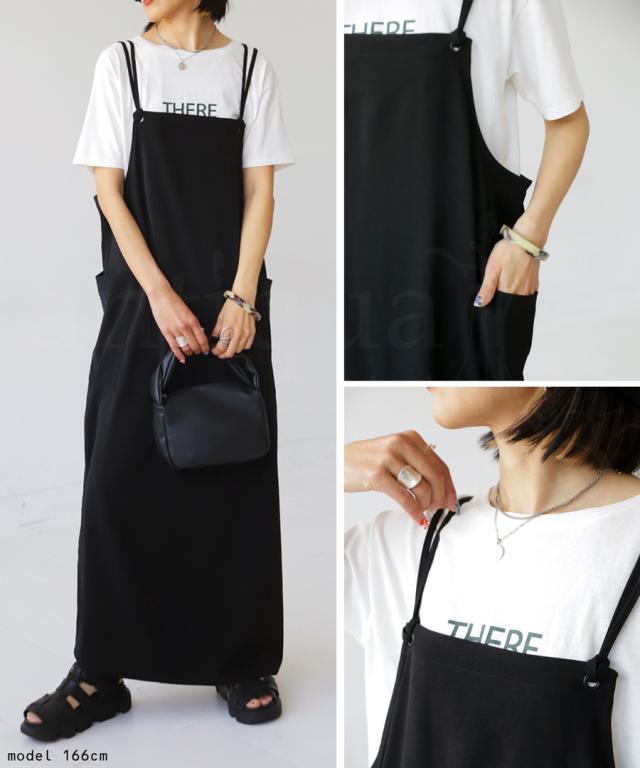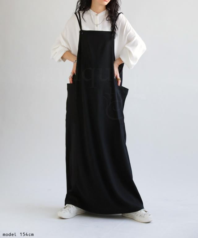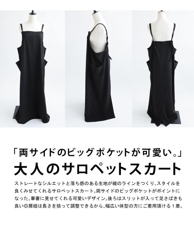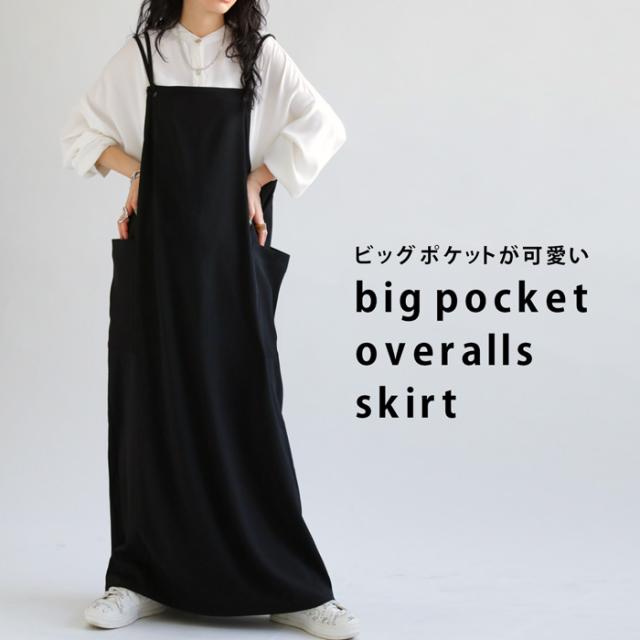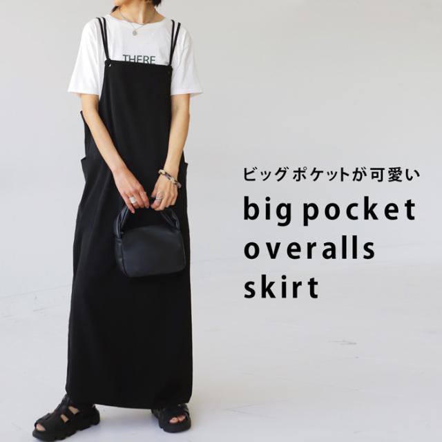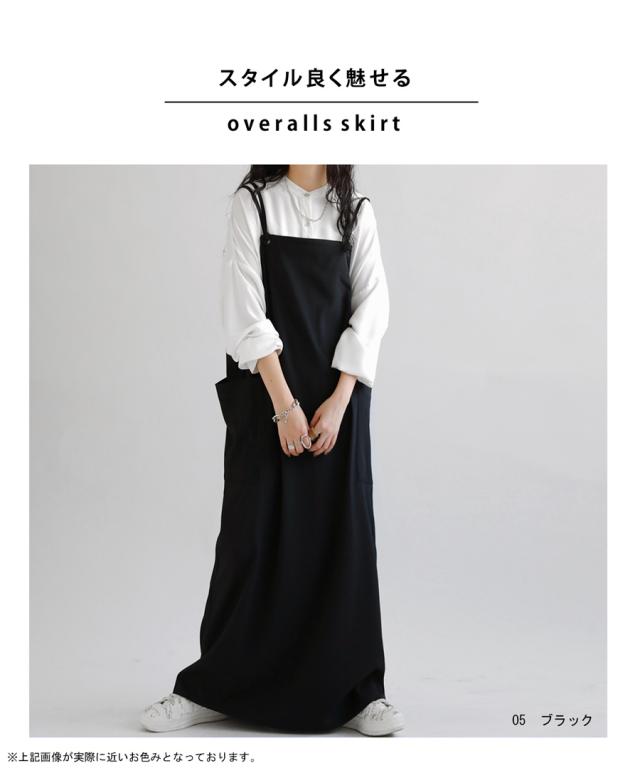 ao-00080 スカート ボトムス 無地 シンプル サロペスカート サロペット ゆったり ロングスカート ビッグポケット バックスリット スリット サロペ ストレート ジャンスカ ワンピ