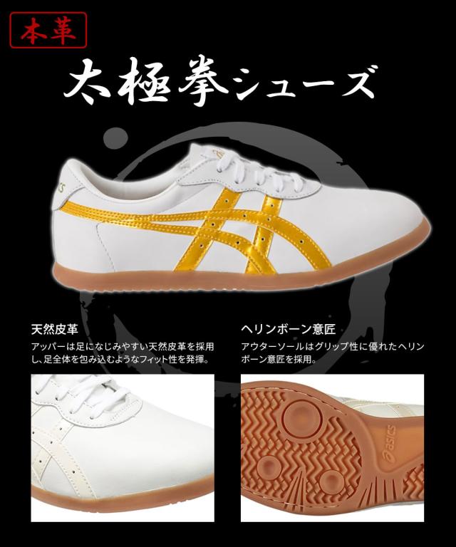 アシックス 太極拳 シューズ ウーシュー WU TOW013 武術 トレーニング 拳法 スポーツシューズ 室内 フラット ジム ローカット ユニセックス メンズ レディース ウィメンズ 運動靴 スポーツブランド 天然皮革 紐 男性 女性 白 ホワイト 黒 ブラック イエロー 黄色 asics