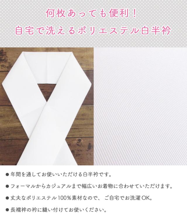 【4枚までメール便送料無料】半衿 洗える 白 半襟 半えり 通年用 無地 ポリエステル100% 白 ホワイト 洗濯OK 着物 袷 単衣 襦袢 必需品 定番 春 秋 冬 半襟 洒落 フォーマル 振袖 訪問着 色無地 レディース 女性