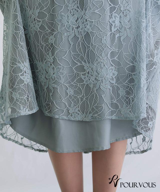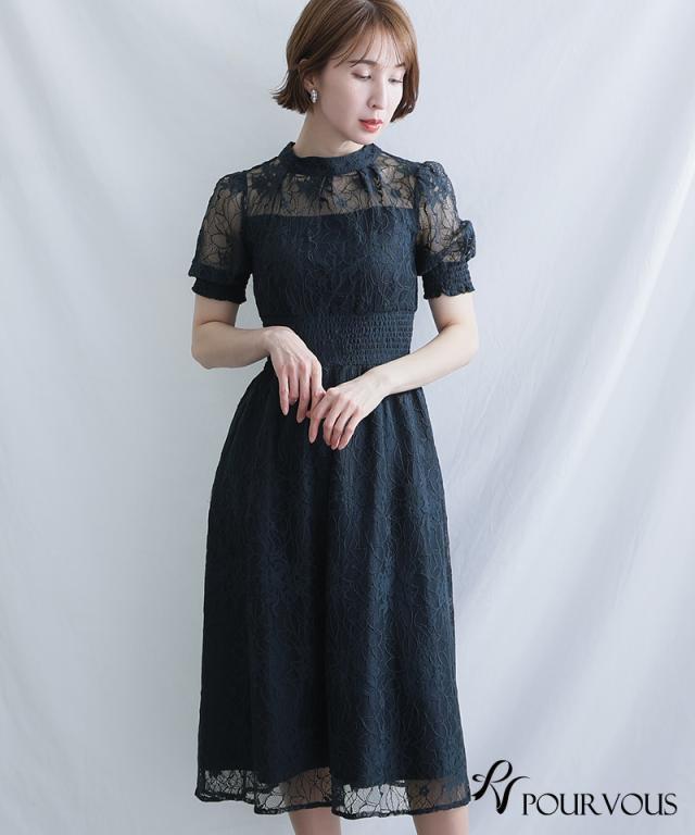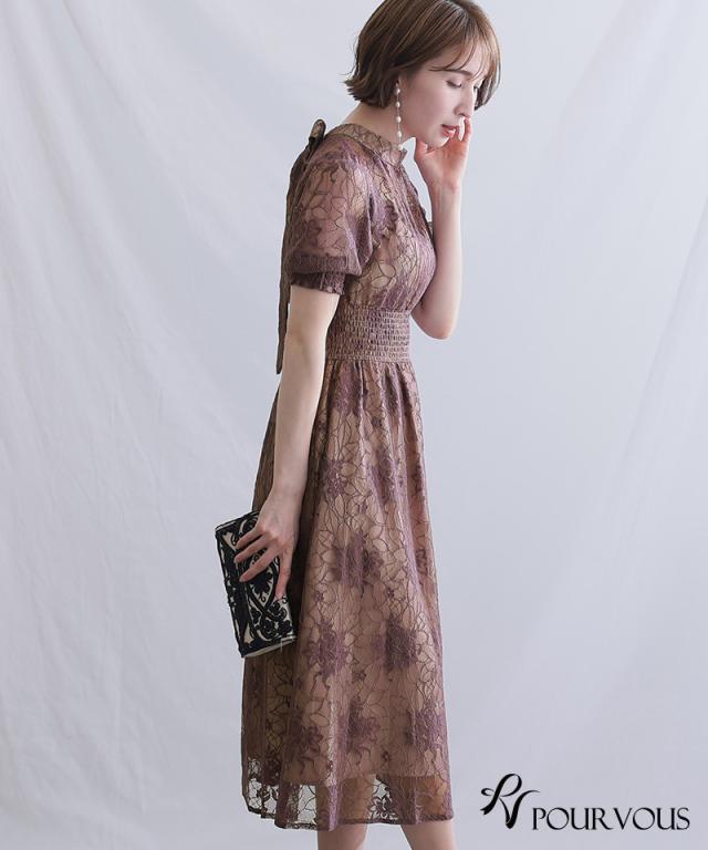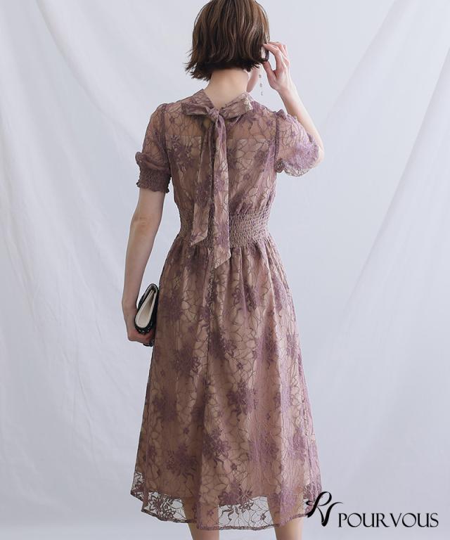 バックリボンシャーリングレース2wayドレス【559222224】20代・30代・40代・54代長袖・膝丈・セットアップ・スカート・体型カバー・ジャケット・テーラード・スーツ・大きいサイズなど・即日発送・送料無料結婚式・婚活・披露宴・顔合わせ・二次会・同窓会・お呼ばれ・食事会・謝恩会・親族・七五三・お宮参り・冠婚葬祭・弔事・女子会・デート・入学式・卒業式・入園式・卒園式・ママ・マタニティー・セレモニー・セレブ・パーティー
