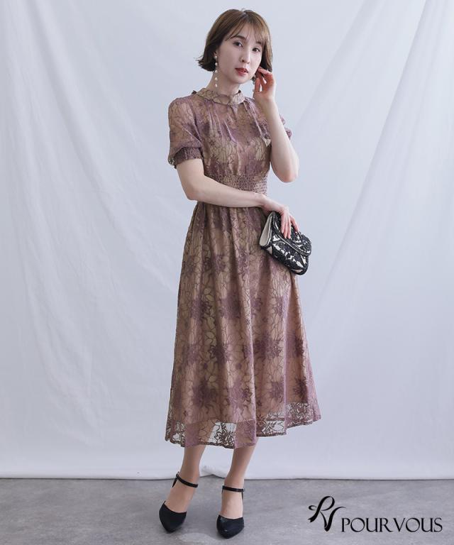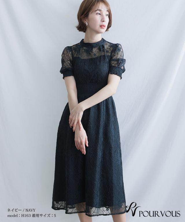 559222224 パーティードレス ワンピース 結婚式 大きいサイズ ドレス 体型カバー フォーマルドレス 小さいサイズ フォーマル お呼ばれ 顔合わせ 上品 小柄 韓国 20代 30代 40代 50代 春 夏 秋 冬 服装 服 着痩せ 低身長 総レース レース 袖あり 袖付き 袖 ハイネック 2WAY