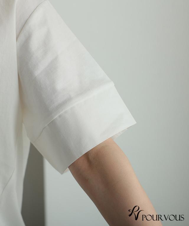 フロントと袖にシャツ生地を使用したシンプルなカットソー