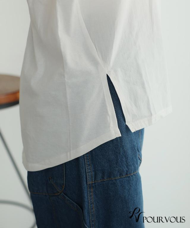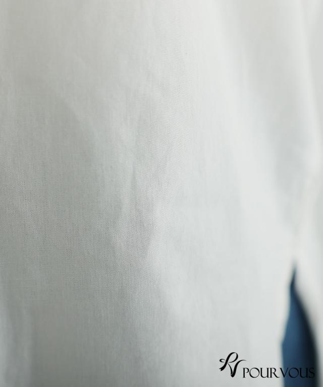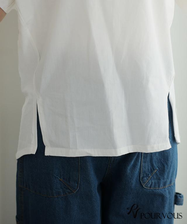フロントと袖にシャツ生地を使用したシンプルなカットソー。