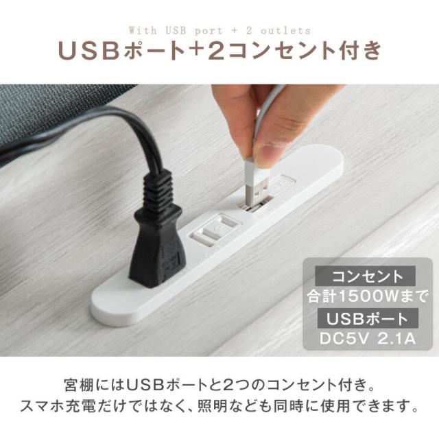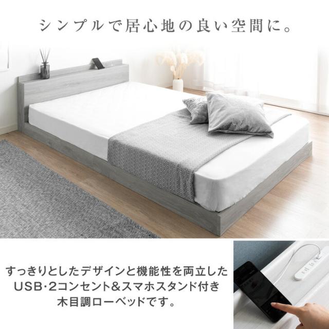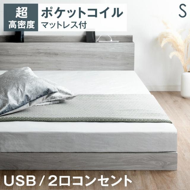 ベッド マットレス付き USB・2コンセント&スマホスタンド付 マットレス付 フレーム 宮棚付き すのこベット ローベット シングルサイズ シングルベット シングルベッド おしゃれ