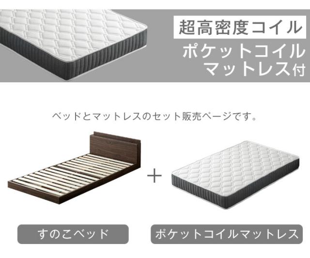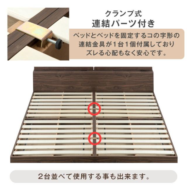 ベッド マットレス付き シングルベッド 2口コンセント付き宮棚 ローベッド マットレス付き シングル 連結 フレーム フロアベッド ポケットコイルマットレス 木製 マットレスセット ベッドフレーム ベットフレーム 連結ベッド