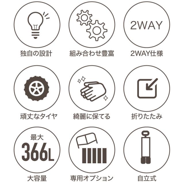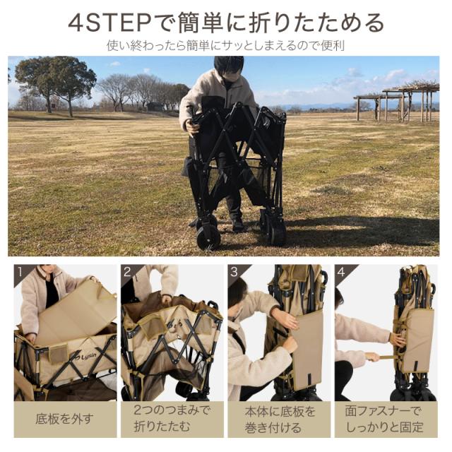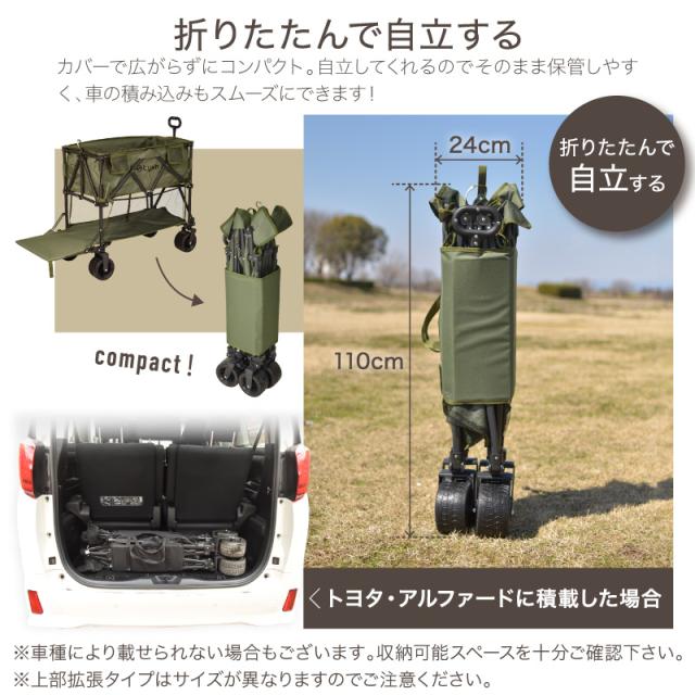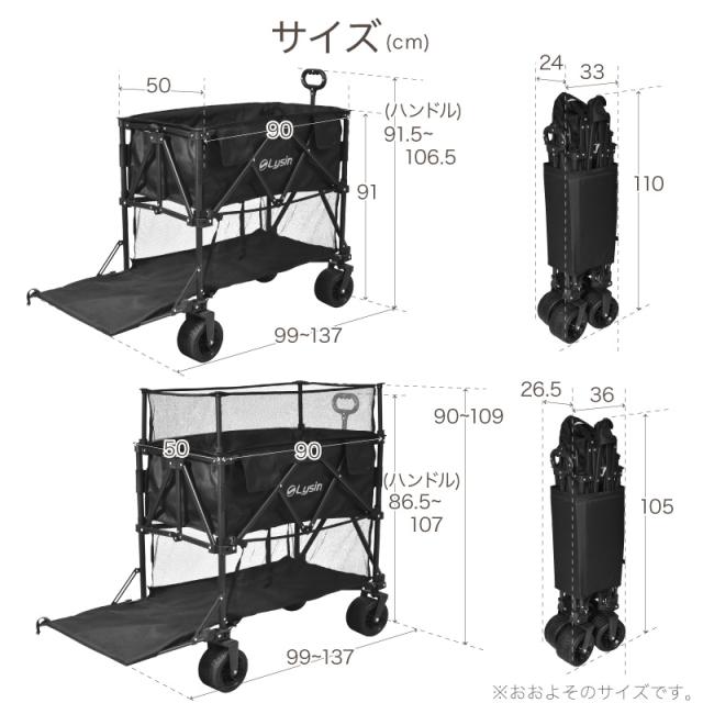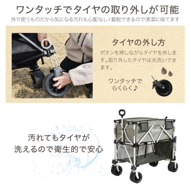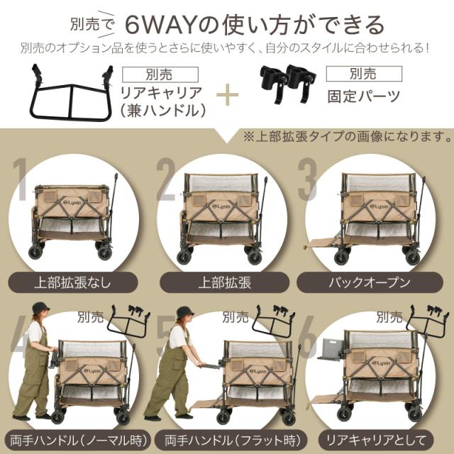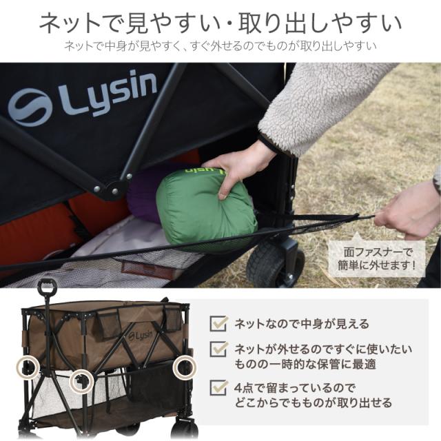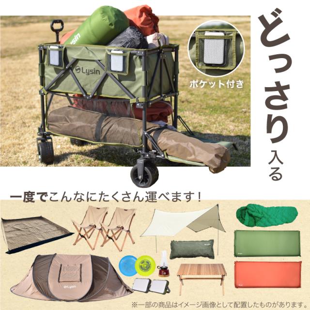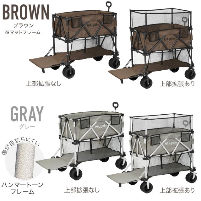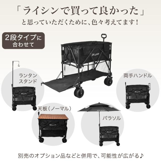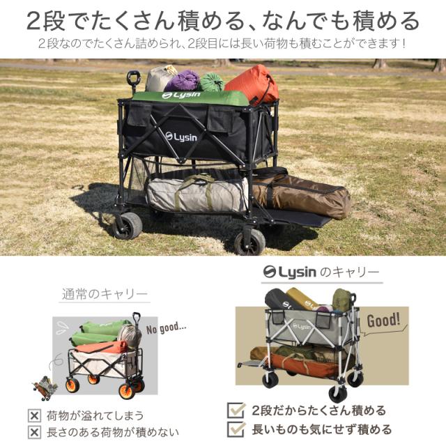 ライシン アウトドアワゴン Eシリーズ 2段 最大366L 上部拡張 あり/なし 後ろ開け キャリーワゴン キャリーカート 大容量 折りたたみ 【1年保証】