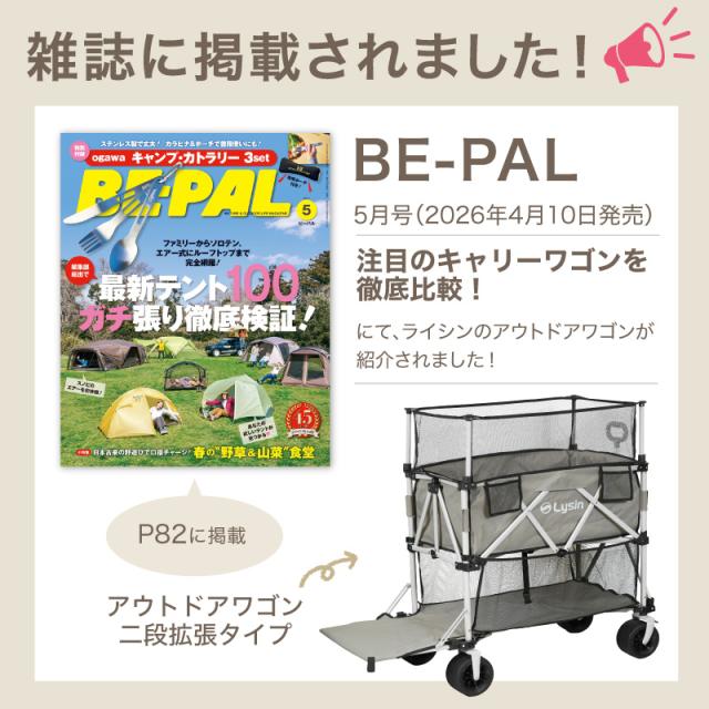 ライシン アウトドアワゴン Eシリーズ 2段 最大366L 上部拡張 あり/なし 後ろ開け キャリーワゴン キャリーカート 大容量 折りたたみ 【1年保証】