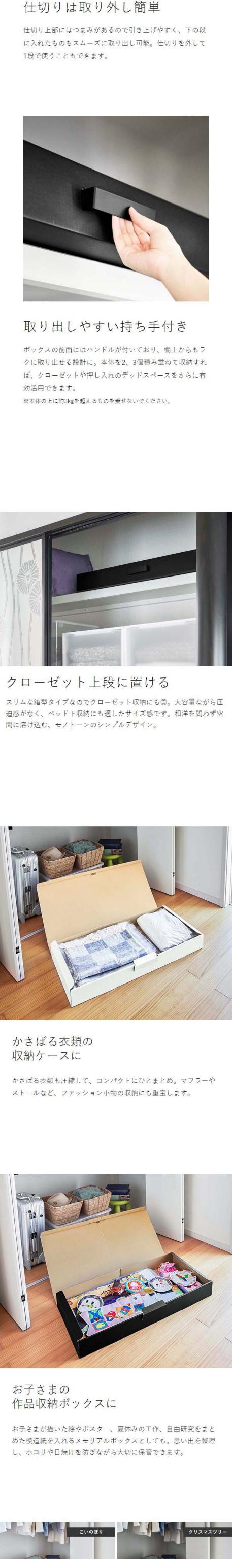 『 tower( タワー )着物収納ボックス 』は、着物や浴衣の保管に便利な幅広の衣装ケース。仕切り付きの上下2段構造で、帯や小物類も一緒に収納できます。軽くて丈夫な紙製で湿気に強く、通気性も抜群。取っ手付きで、押し入れやクローゼットからの取り出しもスムーズです。お子さまが描いた絵などの大切な作品収納、こいのぼりやクリスマス飾りなど季節物の収納にも最適。大容量ながらスリムなので、ベッド下収納ケースとしても◎。和室・洋室どちらにもなじむシンプルなデザインです。“ヤマジツ”の愛称で親しまれる山崎実業は、「くらしを整える」商品を提案し続けています。