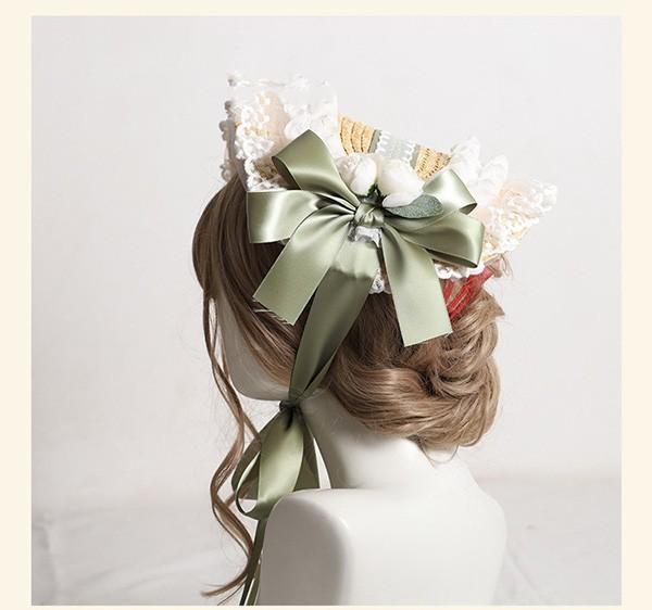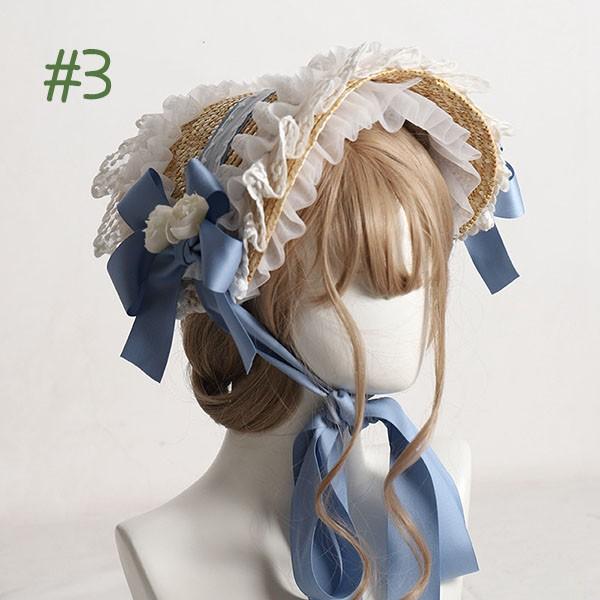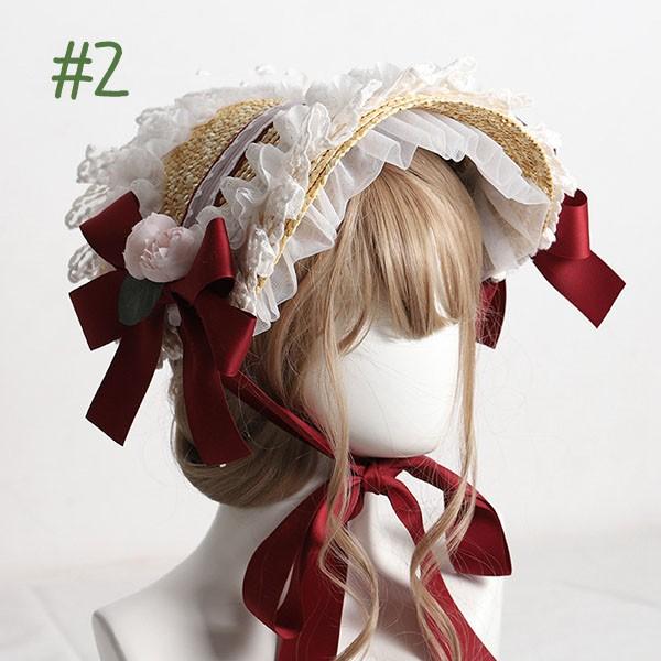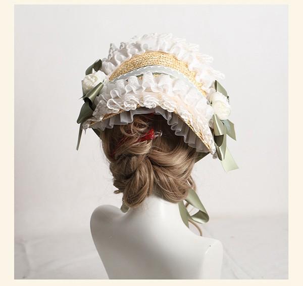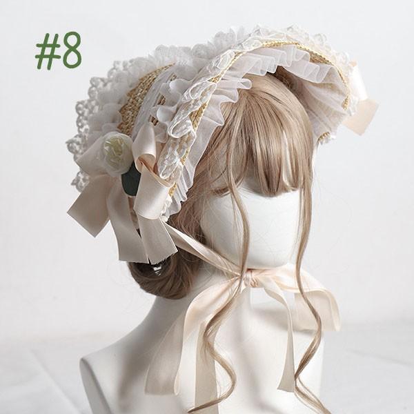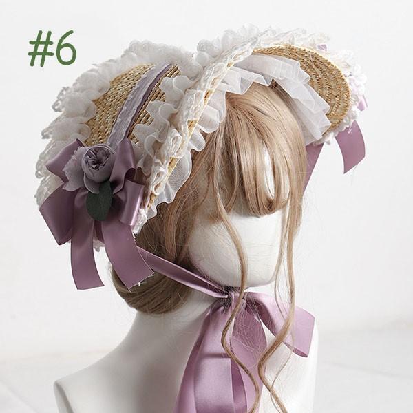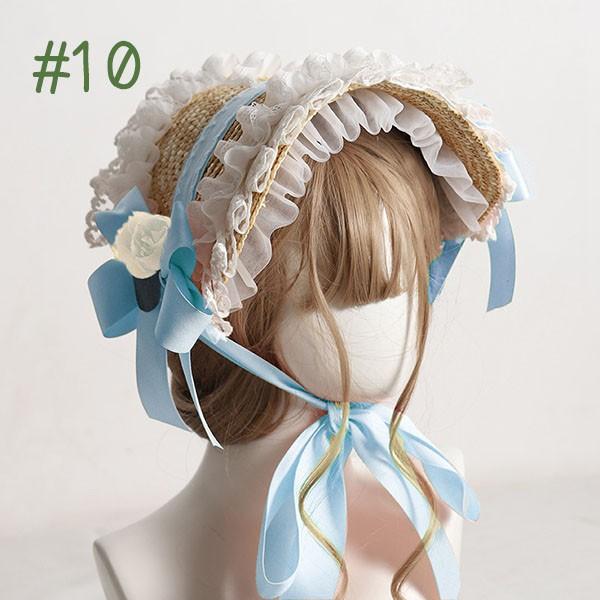 ストローハット クラシカルハット ロリィタ ロリータボンネット レース帽 コスプレ 女の子 帽子 ヘアアクセサリー ヘッドドレス 茶話会