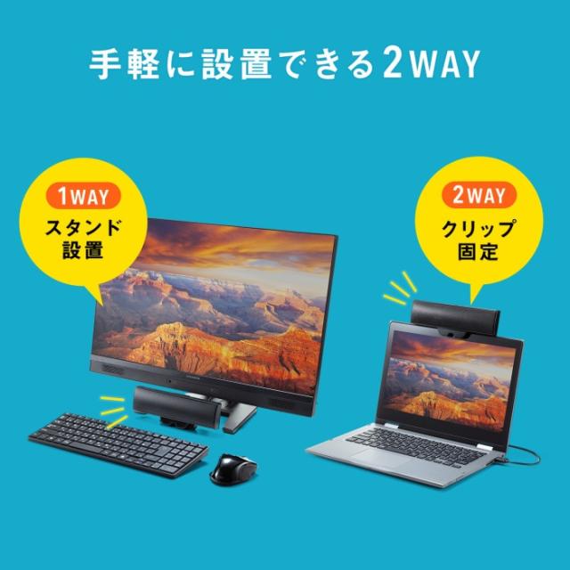 ■商品名:USBサウンドバースピーカー クリップ固定 スタンド設置 選べる設置方法 スリム形状