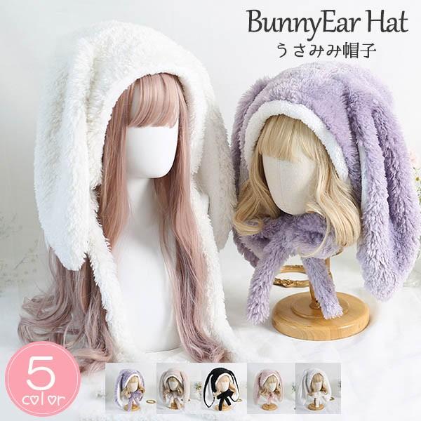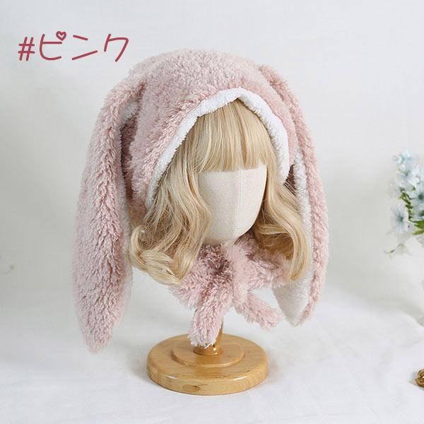うさ耳 帽子 フード もこもこ 可愛い 裏起毛 暖かい コスプレ小道具 女の子 冬小物 ロリータ ロリィタ うさぎ耳付き イースター 仮装 コスチューム