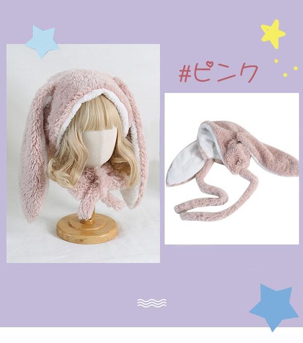 うさ耳 帽子 フード もこもこ 可愛い 裏起毛 暖かい コスプレ小道具 女の子 冬小物 ロリータ ロリィタ うさぎ耳付き イースター 仮装 コスチューム アニマル ケモノ耳 ケモ耳 ピンク ブラック 文化祭 学園祭 パーティー アニマル 動物 アクセサリー イベント ds023x1x1la