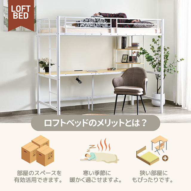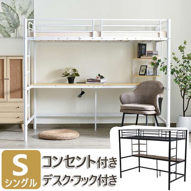 「クーポン配布中」ロフトベッド パイプベッド 子供ベッド子供部屋二段ベッド 耐震 ベッド シングル コンセント付き 収納棚 デスク付き パイプベッド 金属 はしご付き 北欧風 新生活応援