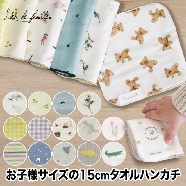 ミニタオルハンカチ 15cm ハンドタオル 正方形 タオル 子供用 こども用 子ども ミニ 日本製 リヤンドファミーユ オーガニック コットン 綿 ガーゼ 出産祝い 可愛い おしゃれ かわいい 男の子 女の子 総柄 花柄 ナチュラル クマ 車 恐竜 お出かけ ギフト プレゼント お祝い