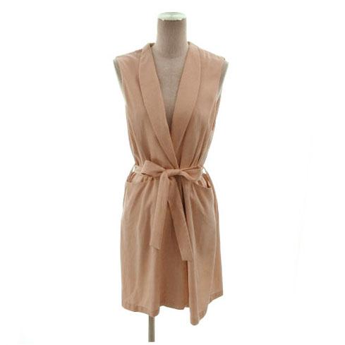 【中古】ビス ViS ジレ ベスト ロング丈 コート ショールカラー 羽織り リボンベルト ピンクベージュ F レディース