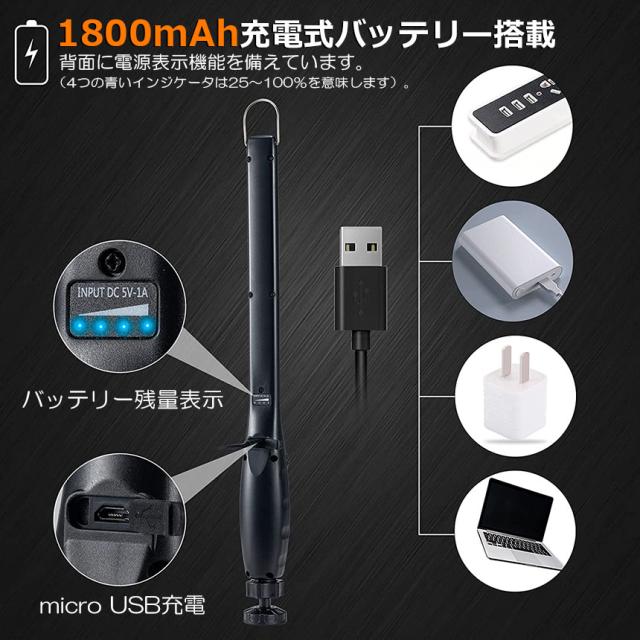 【充電式&磁石付き】電池いらず、充電バッテリ内蔵型で、付属のUSBケーブルで充電が出来ます,底部は磁気が付いていて、鉄がある場所に吸着し、両手を解放します。