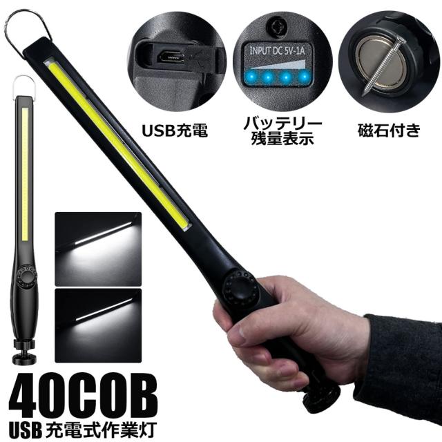 作業灯 LED ワークライト USB充電式 450ルーメン COBライト 懐中電灯 360°回転 フック マグネット 磁気付き 無段階輝度 調整スイッチ 緊急用照明 停電用 車修理 夜間作業 家 屋外 アウトドア キャンプ 工事現場 車載用