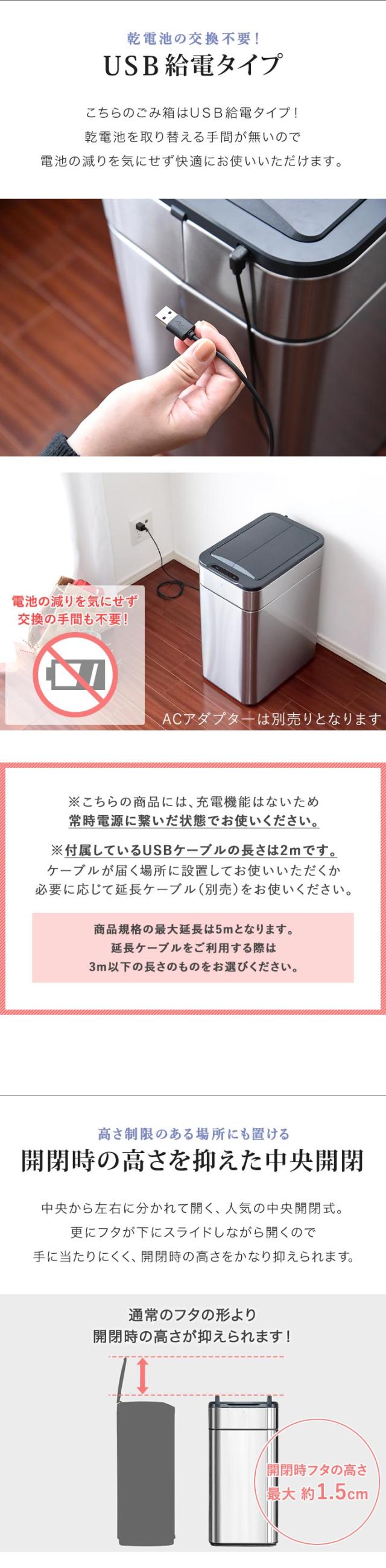 人感センサー横スライド開閉式ごみ箱 USB ごみ箱 塵箱 ダストボックス ペール 屑籠 くずかご 屑入れ くず入れくず箱 屑箱 芥箱 おしゃれ スリム コンパクト 省スペース 大型 中型 大容量 50L 45L 50リットル 45リットル ゴミ袋対応 インテリア キッチン 台所 リビング ダイニング カウンター下 テーブル下 デスク下 オフィス 書斎 寝室 レストラン カフェ 調理場 ナチュラル シンプル 収納 縦型 分別 分ける 角型 四角 四角形 スクエア 対応 ゴミ袋 ごみ袋 自動開閉 自動 自動で開く センサー開閉 センサー センサー式 オート 電動 人勧センサー オート開閉 ハンズフリー タッチレス 手をかざす スライド開閉 清潔 衛生 臭い におい ニオイ ふた付き フタ付き 蓋付き 蓋 フタ ふた 袋 見えない 袋が見えない 袋を見せない 隠す 袋を隠す 電池式 乾電池式 コードレス アウトドア ステンレス スチール 光沢 マット ホワイト 白 シルバー 銀 メタリック アイアン インダストリアル 工業系 スペーシー ミッドセンチュリー モダン スタイリッシュ クール フューチャリスティック サイバーパンク 北欧 インテリア・寝具・収納 ゴミ箱