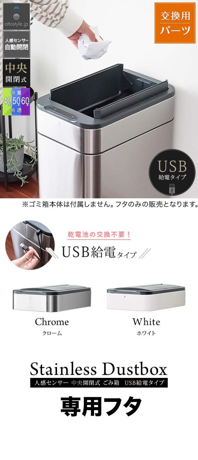 自動開閉 ゴミ箱 交換用ふた 40L/50L/60Lタイプ 専用フタ USB給電タイプ 人感センサー 中央開閉式 ステンレスごみ箱 ふた単品 交換用パーツ 自動センサー付き ダストボックス ※フタのみ/ゴミ箱本体別売 1年保証 送料無料