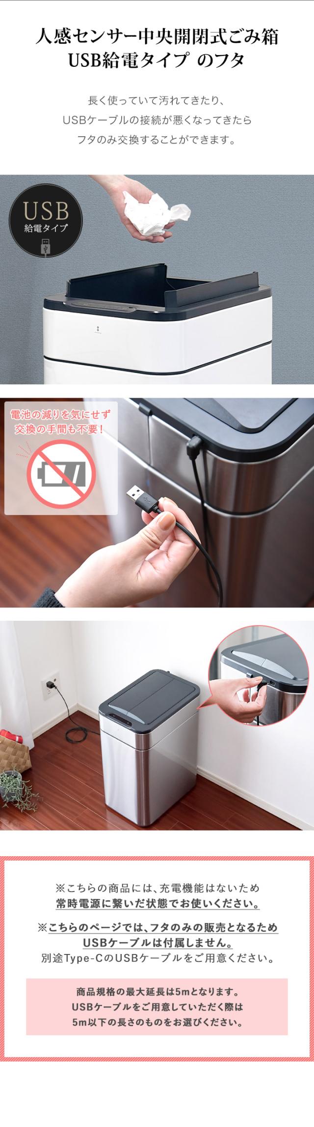 | 対象ごみ箱: 人感センサー中央開閉式ステンレスごみ箱 USB給電タイプ |