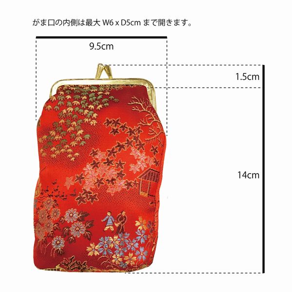 | 約 W9.5 x H15.5 cm がま口の内側 最大W6 x D5 cmまで開きます。 |