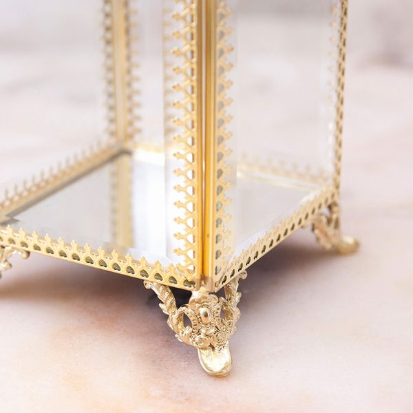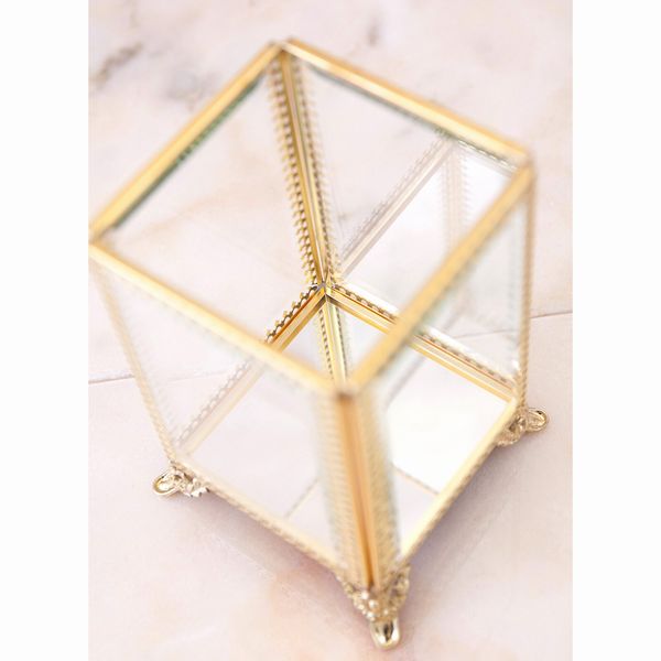 小物収納 小物入れ 整理用品 インテリア雑貨 家具 インテリア エクラン ガラス ジュエリーボックス 底ミラー ジュエリーケース ゴールド 【送料無料】
