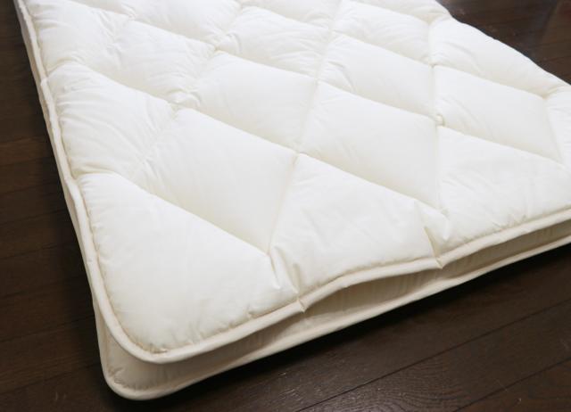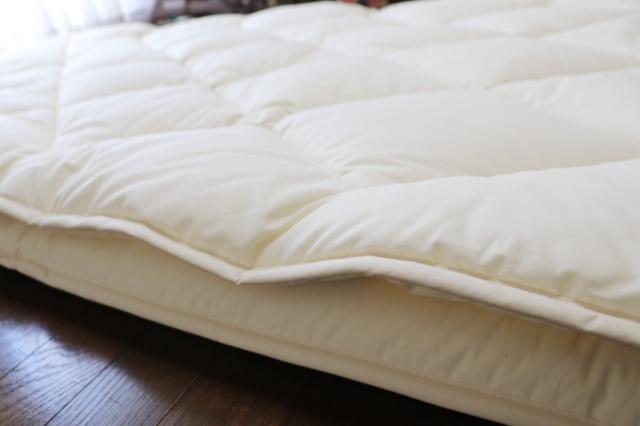 吸湿・発散性が高く、年中快適にお使いいただける敷パッドです。オーガニックの麻をミックスした中綿と、側生地にも柔らかいオーガニック生地を使用しています。敷ふとんやベッドマットに重ねて使うとより快適にお休みいただけます。