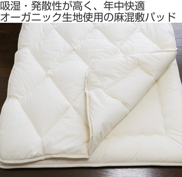 敷パッド シングル オーガニック 綿 生地 混麻100×205cm 日本製 ( 敷きパット ベッドパッド 敷きカバー 中綿 麻 ポリエステル ふっくら コットン生地 通気性 軽い ふんわり やわらか 肌触り )