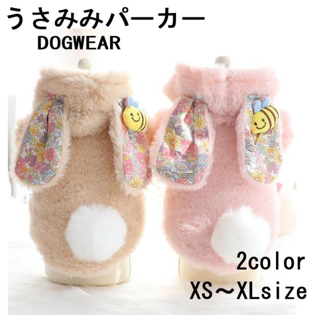 ドッグウエア 犬服 うさ耳 フード ふわふわ フリースジャケット ペット服 犬用 フリース ジャケット うさ耳 小型犬 おしゃれ 秋冬 防寒 ペットウェア 全2色 XS S M L XL ふわもこ 暖かい 可愛い