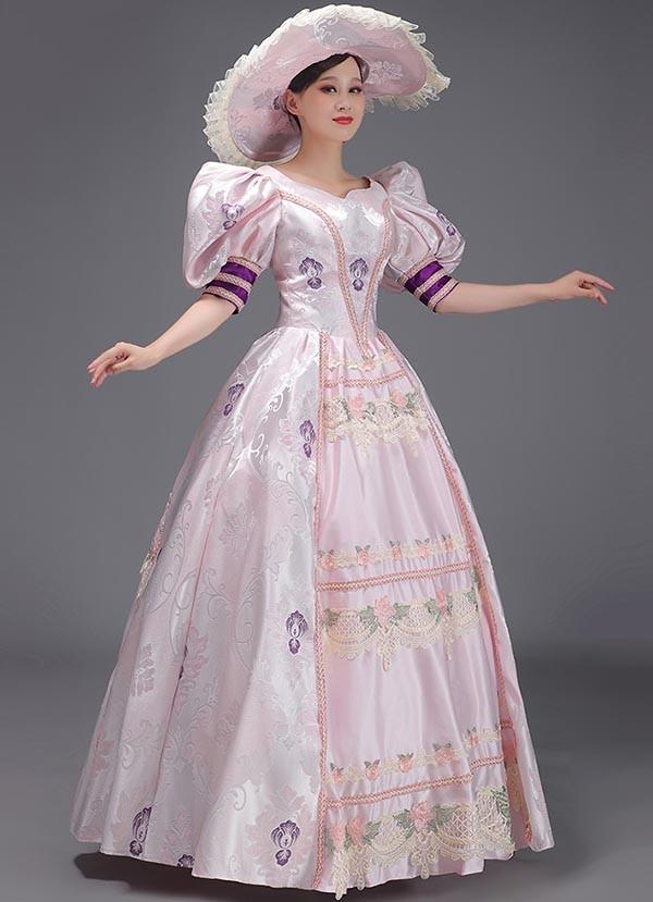 中世 貴婦人ドレス ステージ 衣装 中世ドレス ヨーロッパ 貴族 王族服 ジュリエット カラードレス 演出 現代劇演出 ヨーロッパ風 演出 パーティードレス ピンク ec172t2t2la