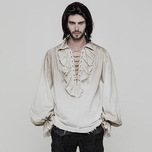 シャツ メンズ 男性 白 黒 大きいサイズ ビンテージ加工 長袖 忘年会 中世風 舞台 中世 貴族 衣装 豪華 コスプレ 王子様 洋服 演劇 コット風 GOTHIC パーティー 演出 ステージ 公爵 S-3XL dk037x1x1la