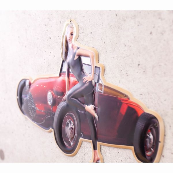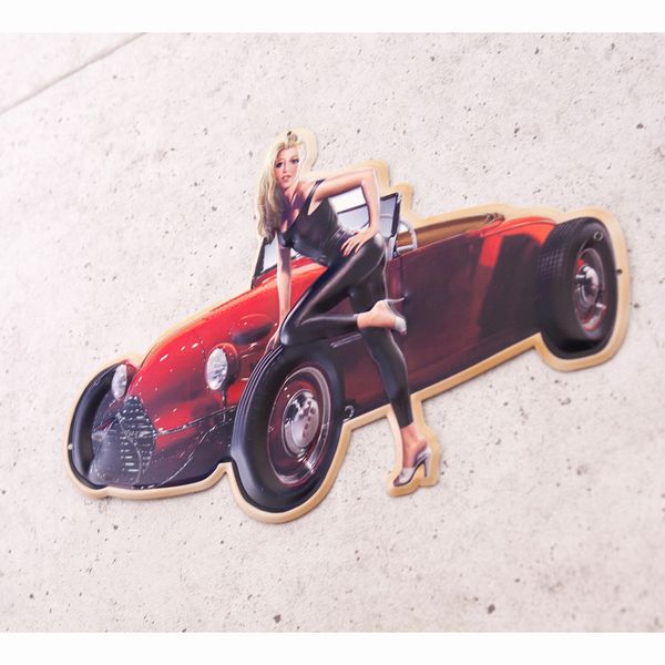 レリーフ アート ウォールデコレーション 家具 インテリア アンティーク エンボスプレート HOT ROD GIRL オシャレ ダイカット 軽量 【送料無料】