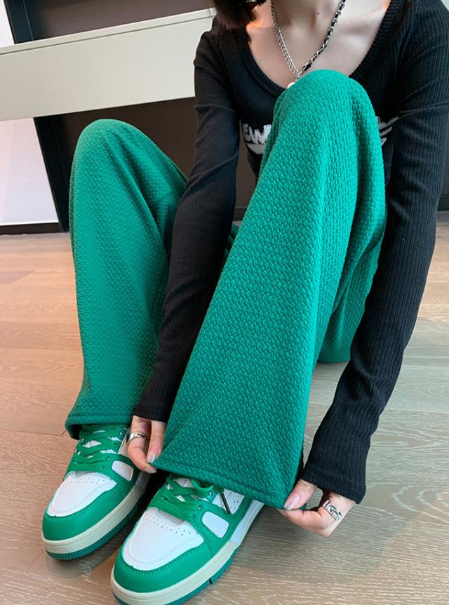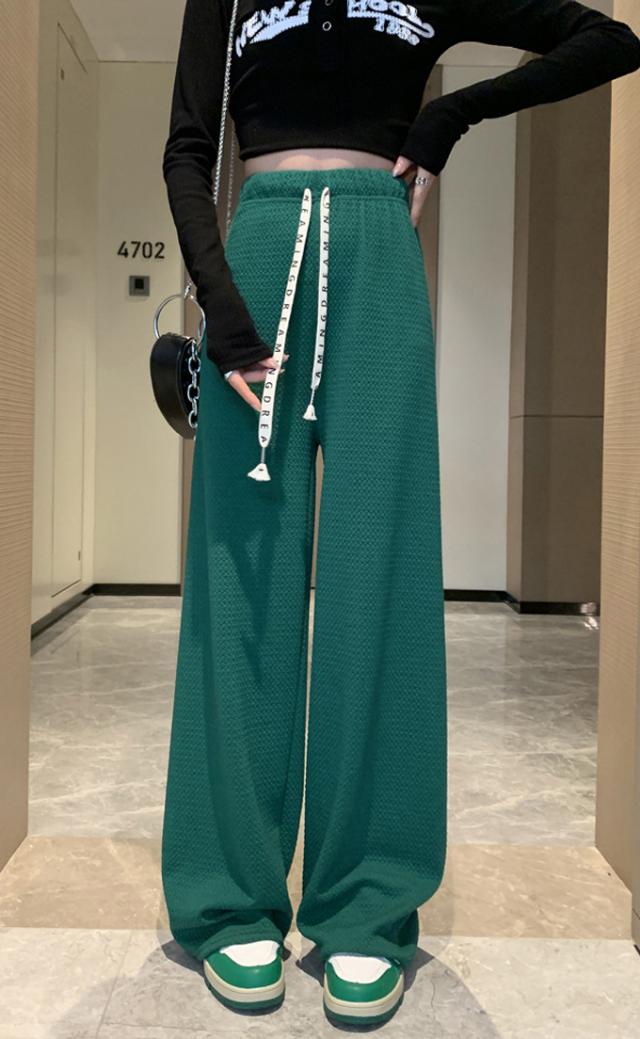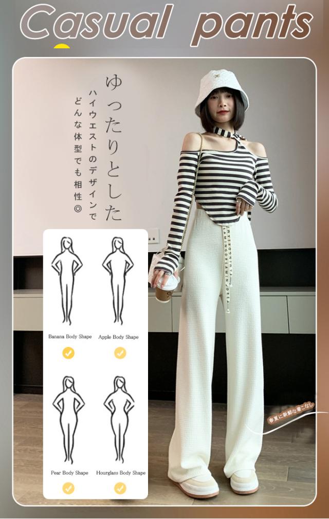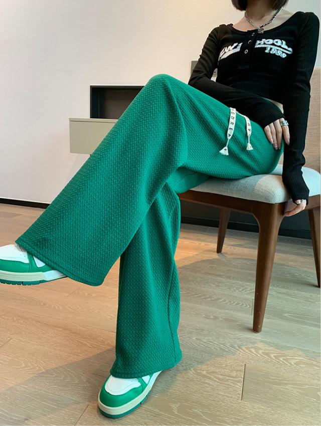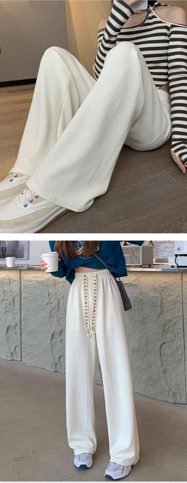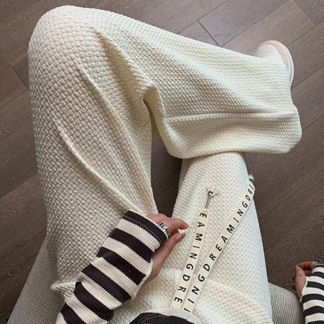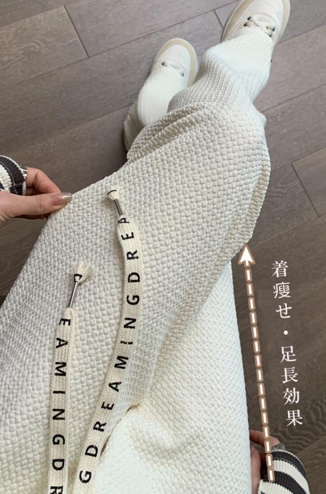 春新作 レディース パンツ エンボス加工 凹凸感生地 ワイドパンツ ストレートパンツ 楽ちん ウエストゴム 春 ウェスト紐付き 調整可 きれいめ カジュアルパンツ