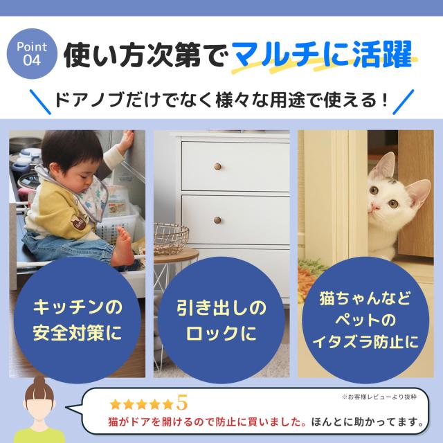 チャイルドロック ドア 2個セット 扉 ノブ 赤ちゃん ベビーガード ストッパー 子供 ペット 安全対策 いたずら防止 引き出し 食器棚 窓 キッチン ロック おすすめ ベビー キッズ セーフティーグッズ ガード ドアストッパー ネコ 送料無料