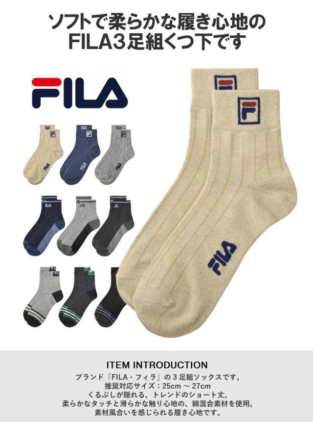 送料無料☆ソフトで柔らかな履き心地のFILA3足組くつ下です。