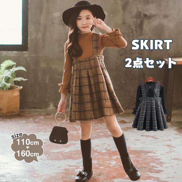 スカート 子供服 ジャンパースカート ジャン キッズ 女の子 チェック柄 子供 ドレス ワンピース 長袖 女の子秋 フォーマル 発