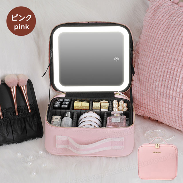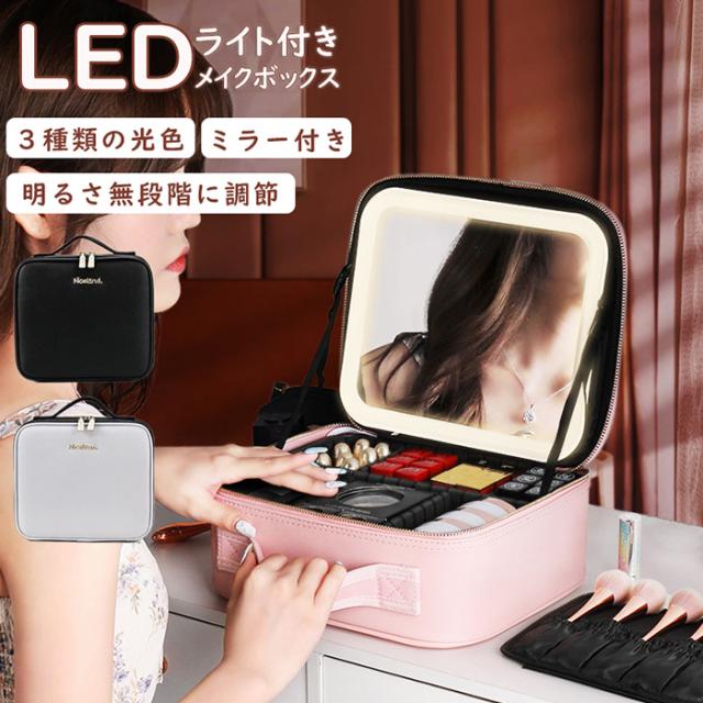 「クーポン配布中」LEDライト付き 化粧品収納ボックス 大容量 化粧品ケース メイクボックス コスメボックス ミラー付き 化粧ボックス メイクケース 3色調節 化粧ポーチ 収納ケース 小物入れ 取っ手付き 母の日 クリスマス プレゼント