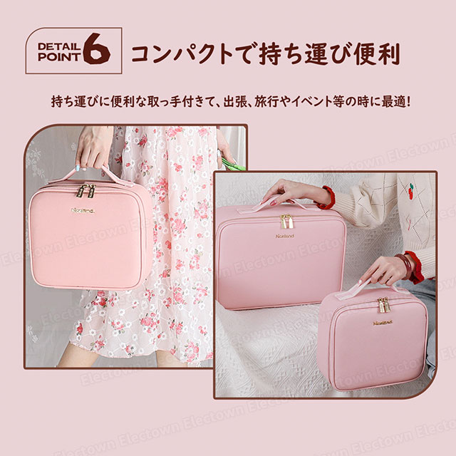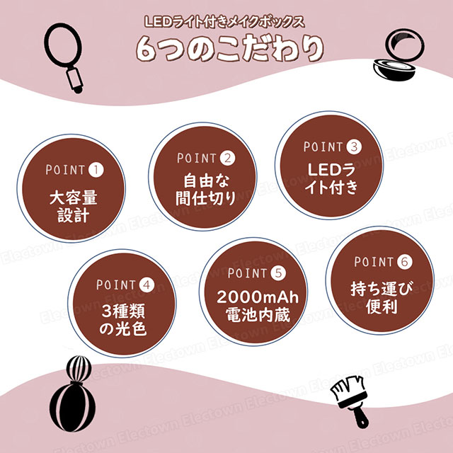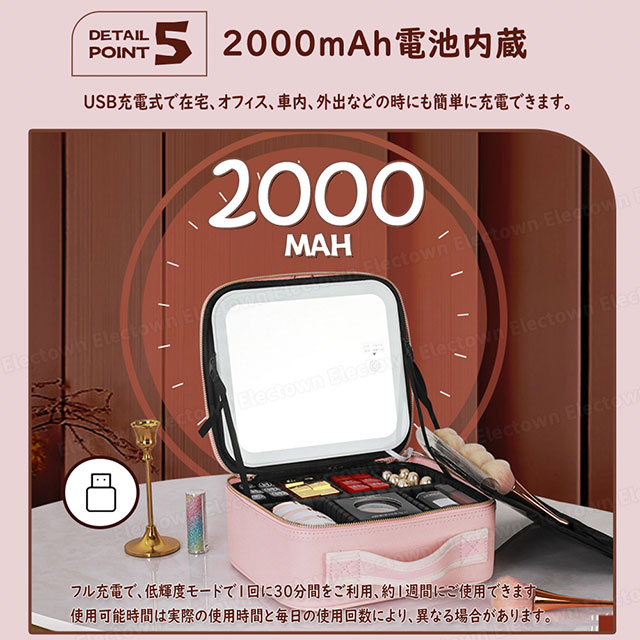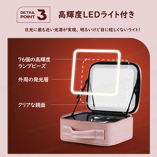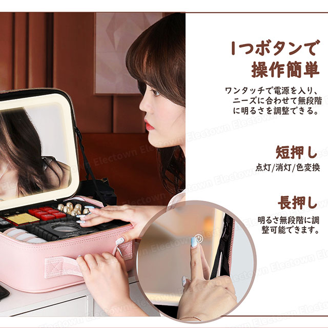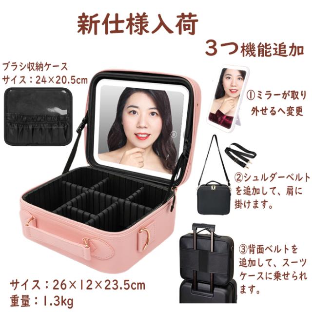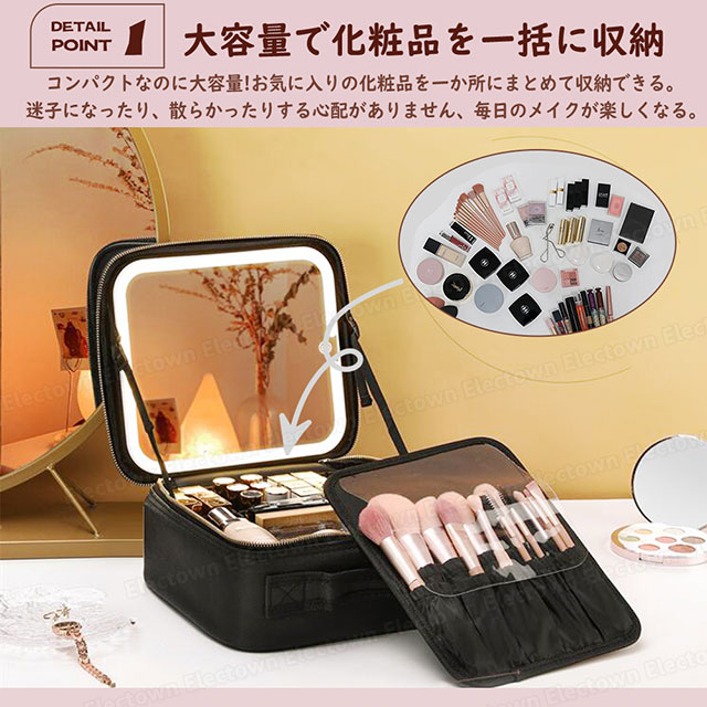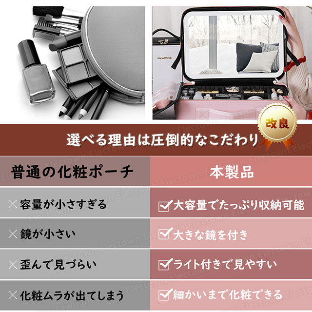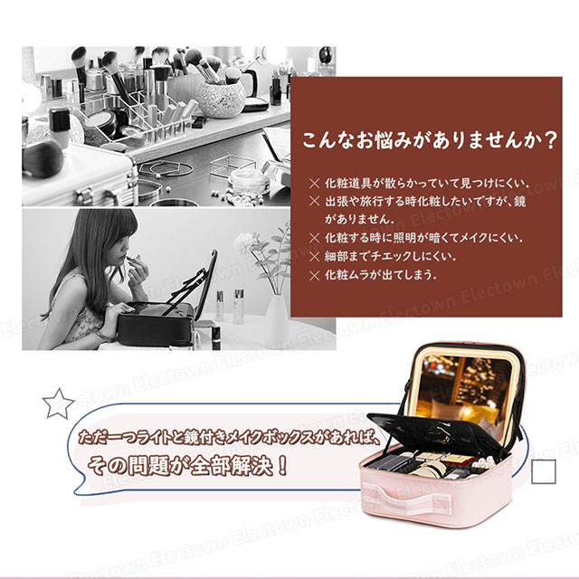 - 容量も多く、たくさんの化粧品が入りますし、鏡も3種類の好きな明るさのライトをつけられるのでとてもメイクがしやすいです!!
