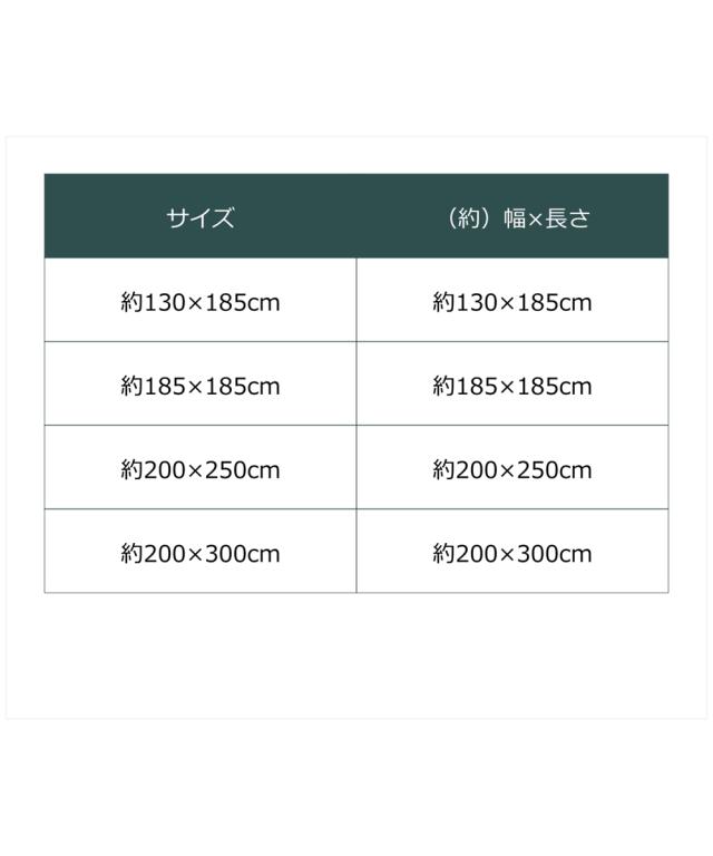 ・ ラグ(約185×185cm)はこちら ・ ラグ(約130×185cm)はこちら ・ ラグ(約200×250cm)はこちら ・ ラグ(約140cm円形)はこちら ・ ラグ(約200cm円形)はこちら |