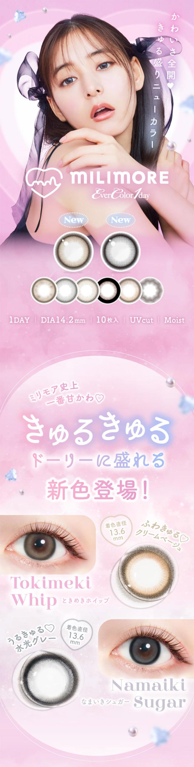 カラコン ワンデー 度あり エバーカラーワンデーミリモア milimore UV 新木優子 1箱10枚入り 14.2mm BC8.7 1day 可愛い パール 甘め 色素薄い ちゅるん 透明感 水光感 高度数 ハイパワー