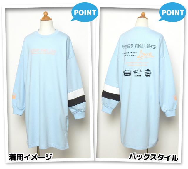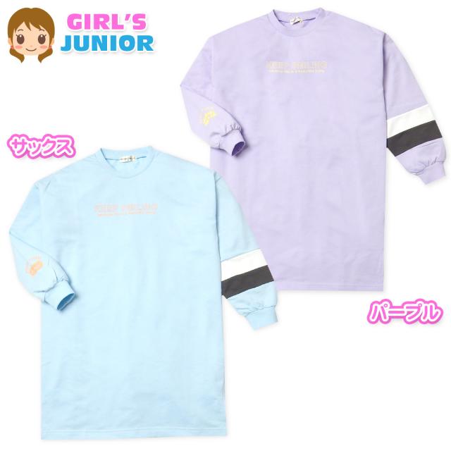 【送料無料】女児 ジュニア ミニ裏毛 長袖 ワンピース スウェット BIGシルエット ゆったり 配色 ロゴ 子供服 女の子 140cm 150cm 160cm nw-0997【メール便対応】