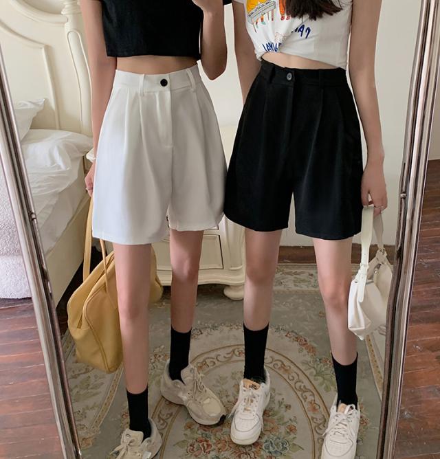 送料無料 ハーフパンツ カジュアル シンプル 無地 オシャレ 着回し オールシーズン スレンダー 美脚 合わせやすい 短パン スーツパンツ