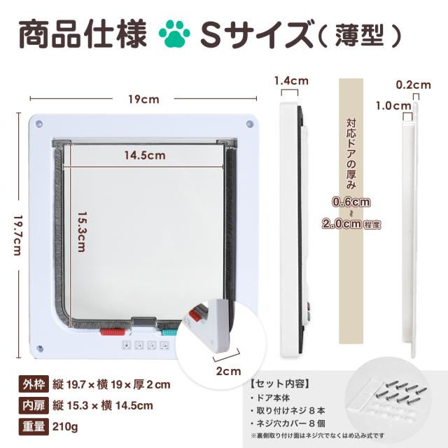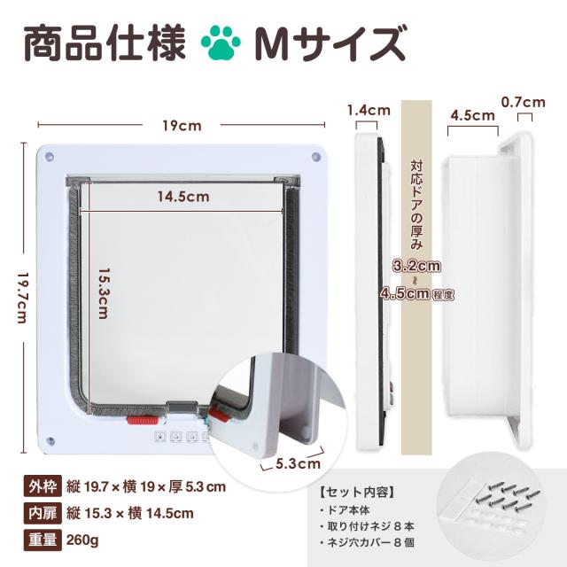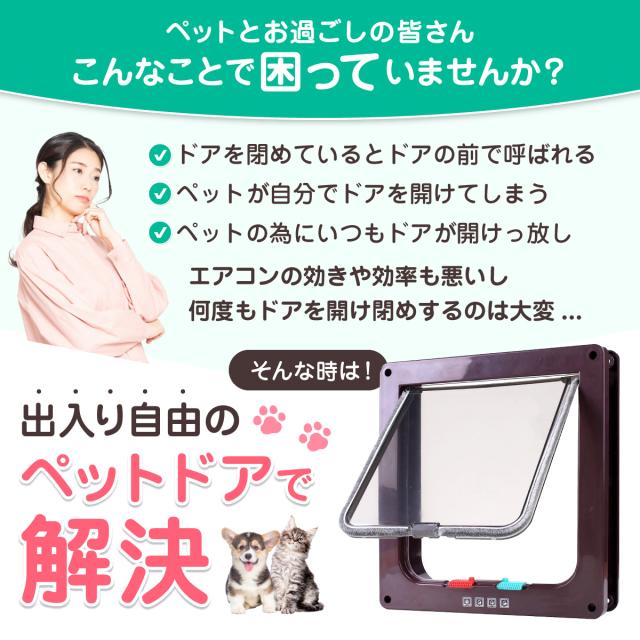 ペットドア キャットドア 猫ドア ねこ 犬 引き戸 後付け DIY 取り付け 室内 壁 扉 薄型 ロック 通り抜け ペット 出入り口 ペット用ドア 猫 小型犬 壁用 引き戸用 ドア キャット用ドア 猫用ドア 犬用ドア 白 ホワイト ブラウン 送料無料