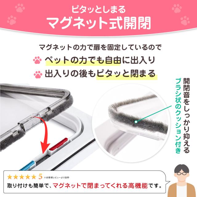 ペットの力でも自由に出入り、通った後もピタッと閉まる